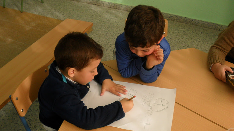¿Entonces? La cantidad de 33 minutos era el rato que tardaríamos en ir desde Brenes hasta Alcolea. Pero, ¿eso era un ratito corto o un ratito largo? Decidimos medirlo con el reloj. Tras el patio, nos fijamos en el reloj y éste comenzó a contar 33 minutos; la seño puso la alarma del móvil para que no nos despistásemos. Mientras el reloj contaba, nosotros estuvimos yendo al cuarto de baño por grupos, Jorge nos hizo cosquillas con la pluma, estuvimos recordando lo leído en la sesión anterior del cuento de Ana y Andrés, terminamos de solucionar el problema de los dientes de la boca de dragón y comenzamos a leer un nuevo capítulo del cuento. Cuando estábamos empezando a hacerlo, sonó la alarma. Ahora ya sabíamos cuánto duraban 33 minutos: un ratito tan grande como para hacer todas esas tareas que nos había dado tiempo a hacer.